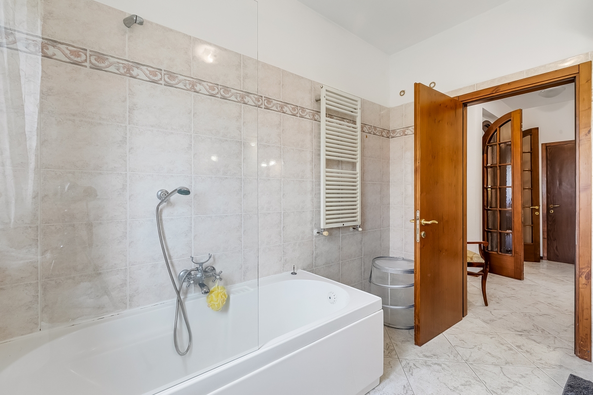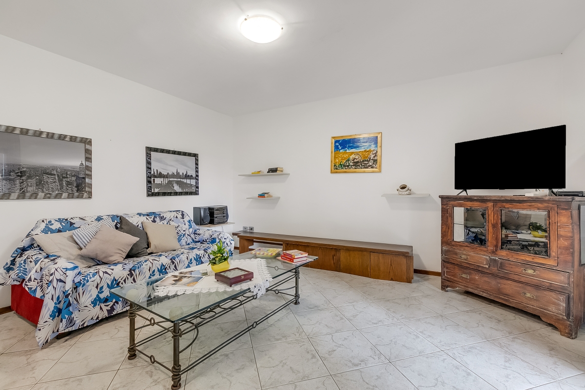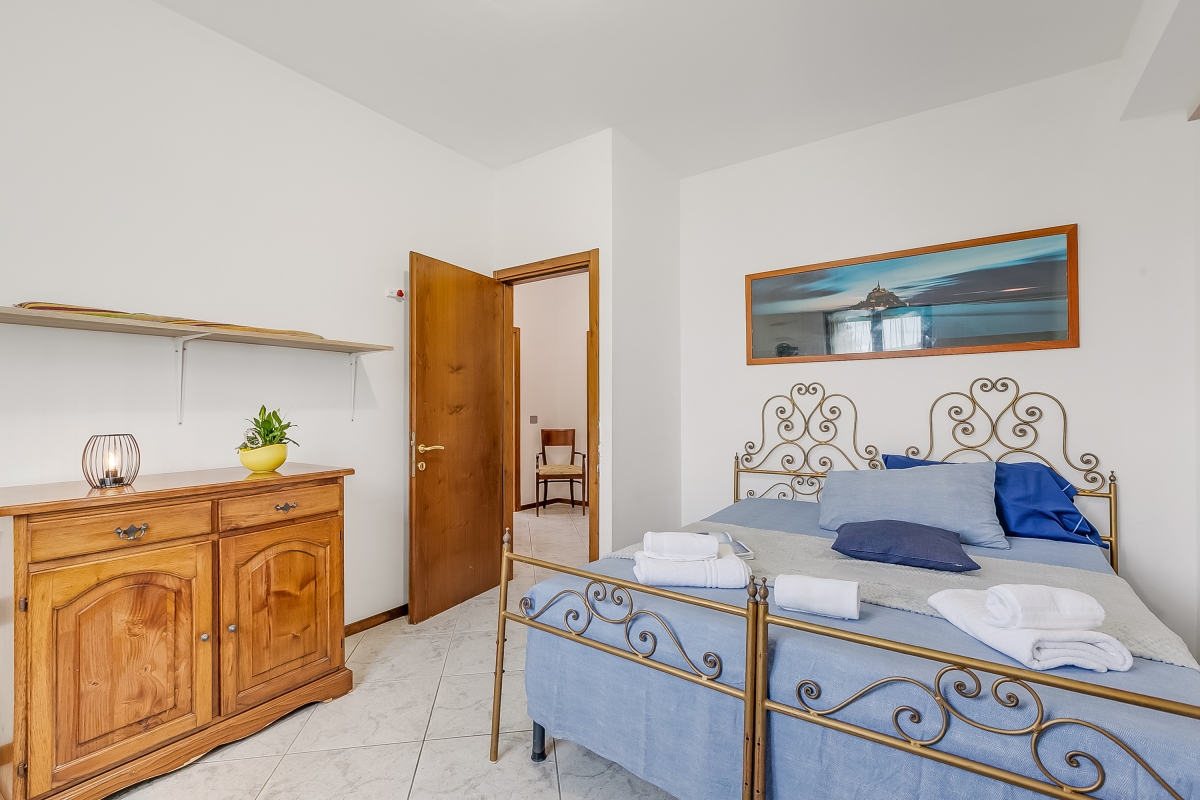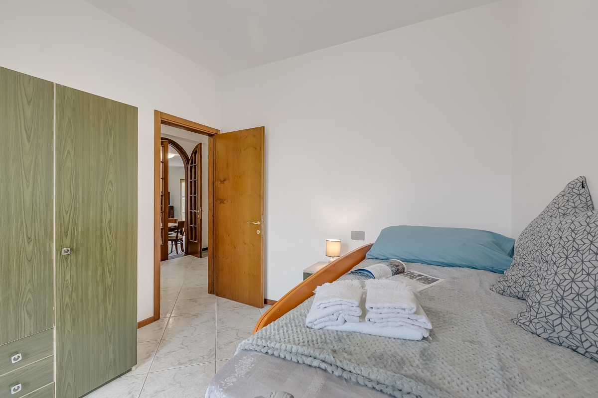 The house is surrounded by 5,000 m² of landscaped grounds, perfect for relaxing and unwinding. Seven steps lead up to a covered terrace furnished with a table, chairs and a barbecue for enjoyable al fresco dining. The entrance opens onto a bright living room with a sofa and smart TV, and a table with chairs; to the left is a functional, well-equipped kitchen with a dining area (gas hob, extractor hood, dishwasher, electric oven, toaster, electric kettle, fridge-freezer). Two steps lead to the sleeping area, comprising two double bedrooms (one with access to a balcony), a bathroom with a bath, and a master bedroom with an en-suite shower room. The house features a garage for one car and adjacent a laundry area with a washing machine.