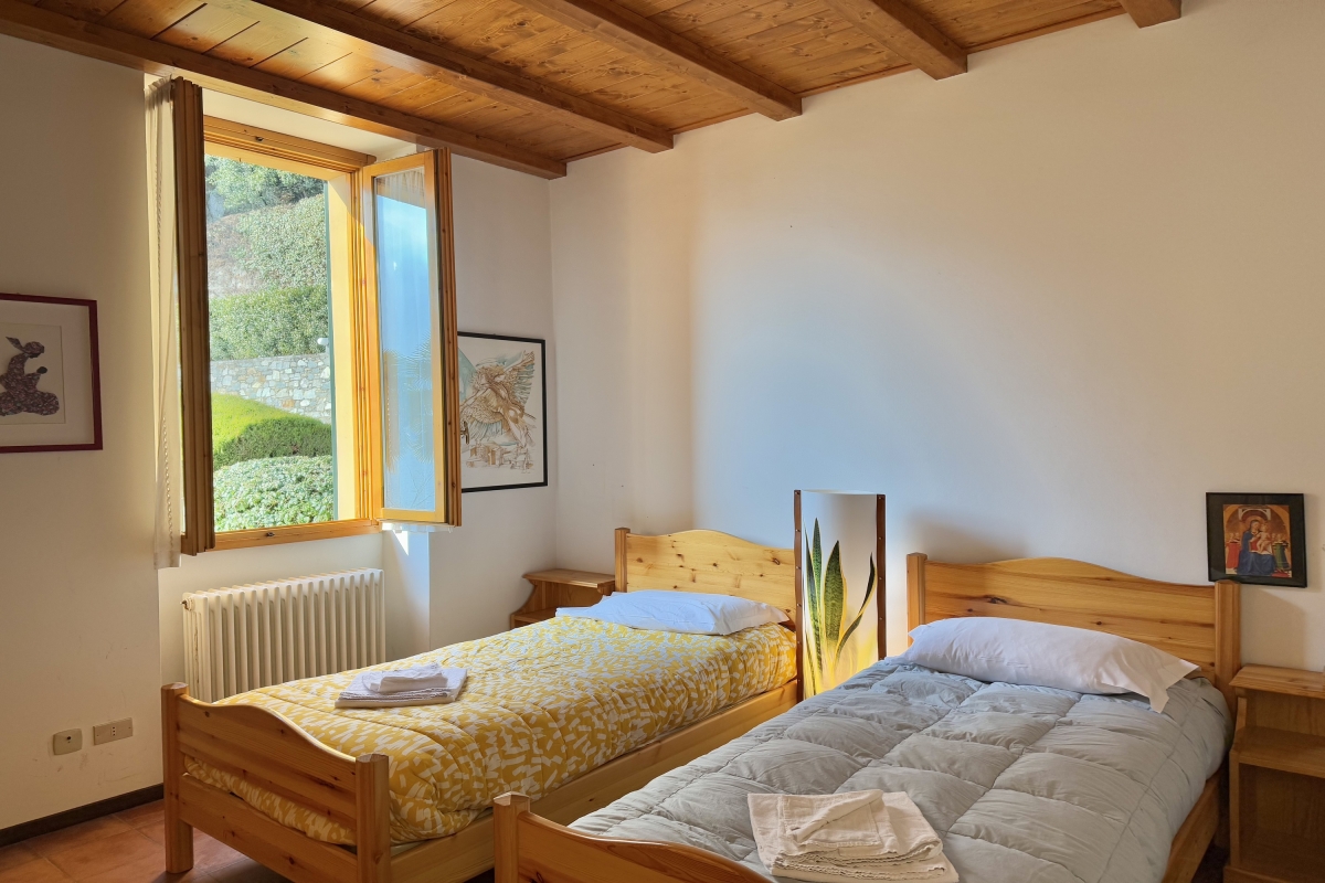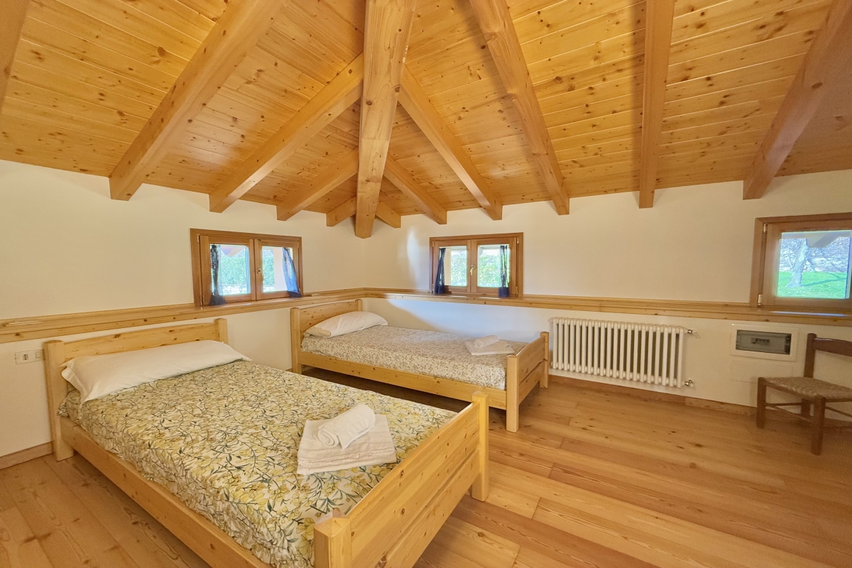 Situated off from the kitchen diner and sitting room, guests will find a bright and welcoming lake view bedroom with twin set of joinable single beds.