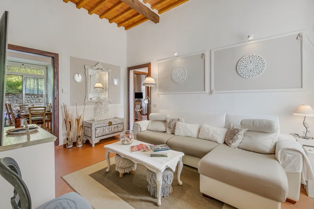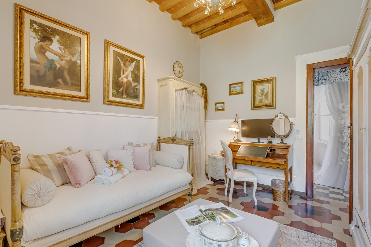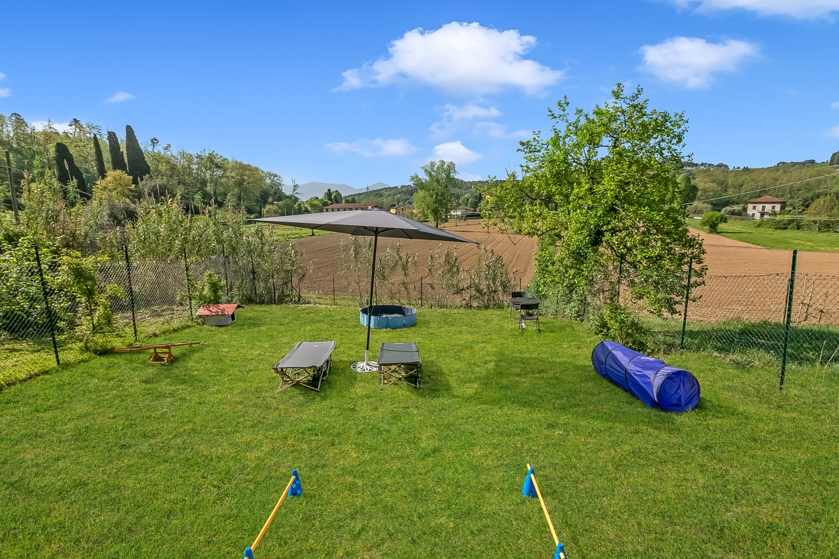 Surrounded by rolling hills, just minutes from the historic centre of Lucca and the beaches of Viareggio. This period residence, nestled among vineyards and olive groves, can accommodate up to 15 guests across two apartments. You will stay in a micro-area with a unique climate, where a pleasant breeze ensures relaxing and enjoyable days. Located in the Cappella area, it is the ideal choice for cycling enthusiasts, families, and friends wishing to share a unique Tuscan experience. The villa sits in a peaceful valley crossed by the River Serchio and the Freddana stream, between the Tyrrhenian coast and the Apuan Alps, right alongside the Via Francigena. You will be welcomed by professional and attentive owners who will make you feel right at home—the perfect setting for special events and experiences.