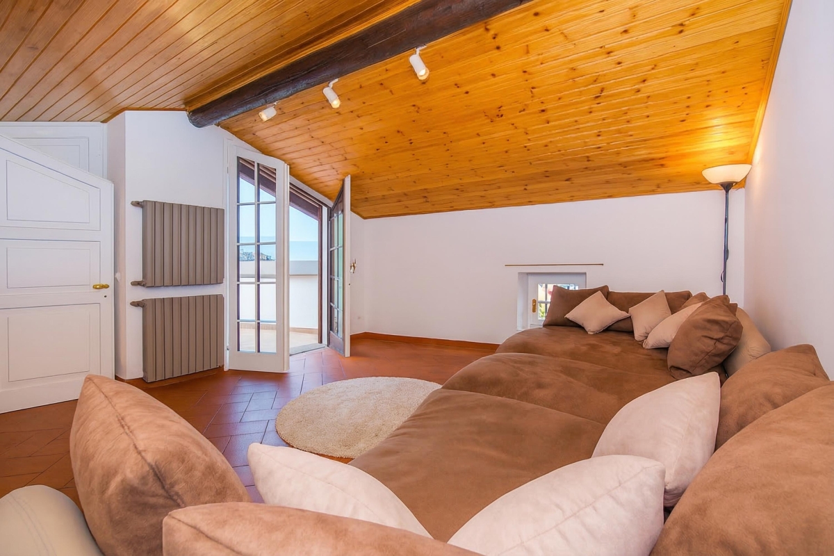 An extra couple of guests staying will be able to take in lake view bliss from the third floor loft style room. Furnished with 2 sofas which convert to an extremely comfortable double bed there is also a TV which allows the room to be used as a second sitting room if required. The French doors lead out onto the roof terrace which offers breathtaking views of Lake Como, the mountains and San Siro.