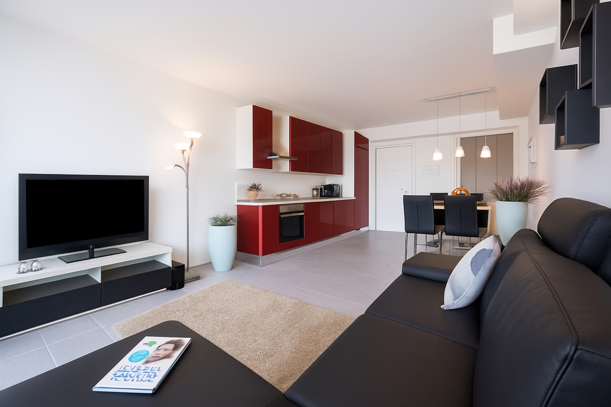 The newly-built holiday apartment is part of a brand new small-scale residence and throughout offers the perfect mix of holiday luxury and practical home-from-home appeal. Guests can easily kick off their shoes and feel at home within the lake view splendour of the contemporary open plan living room.