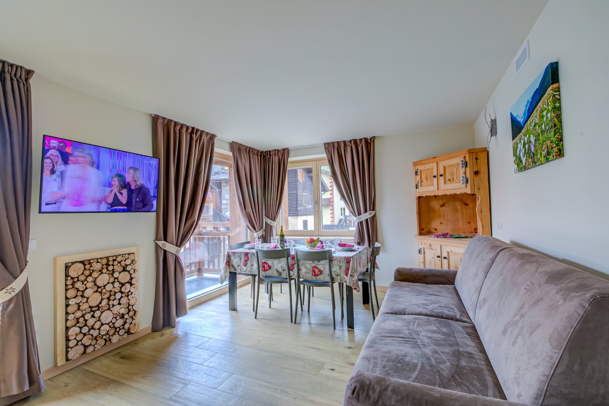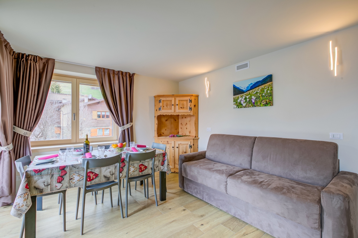 Enjoying a quiet yet convenient backwater setting in the centre, this spacious 3 bed retreat offers a flexible layout to suit families and groups of 7. Located on the 2nd floor and WIFI enabled throughout, the pet-friendly retreat offers a super base for enjoying a year-round Livigno break.
