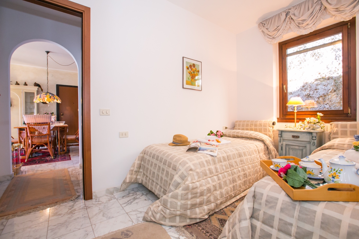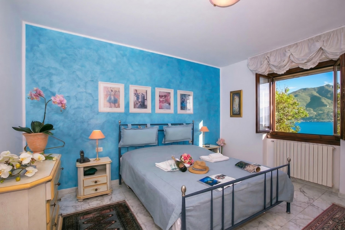 Bedroom 1: A bright and spacious lake-view bedroom with a comfortable double bed and wardrobe. Offers direct access to a sunny terrace overlooking the lake.
