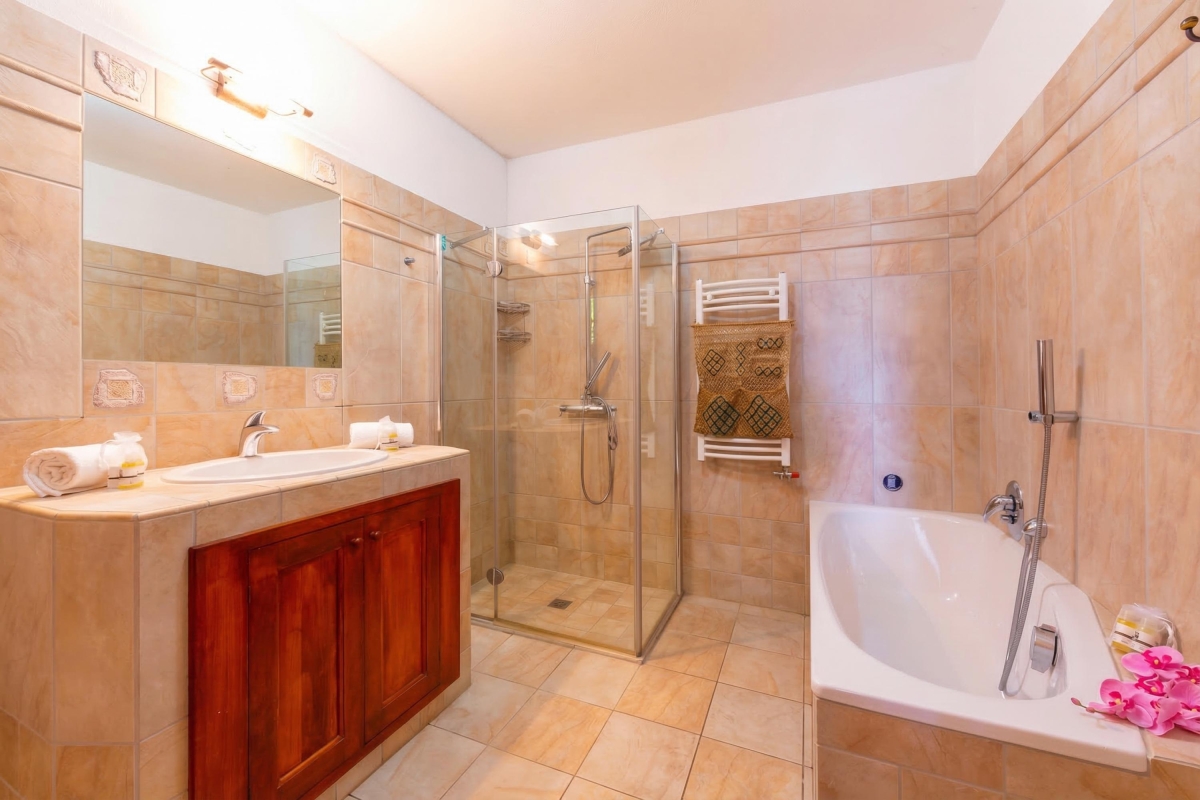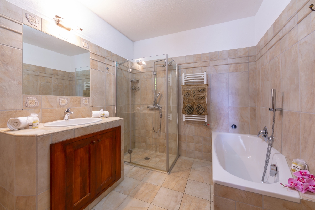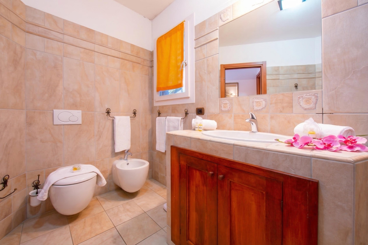 The contemporary family Bathroom is fitted with a full-size bath tub with a shower tap, a separate shower cubicle, wash basin, WC and bidet. A service WC also features in the property.