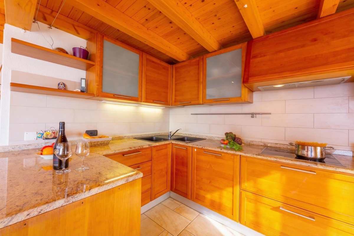 With its fabulous private mountain view terrace, underfloor heating, the bright and modern home also invites you to relax and socialise here, whatever the season. The full-height ceiling in the open plan Living space invites to you unwind and entertain, with a contemporary Kitchen Diner complementing the sitting area with SAT TV, DVD player and WIFI.