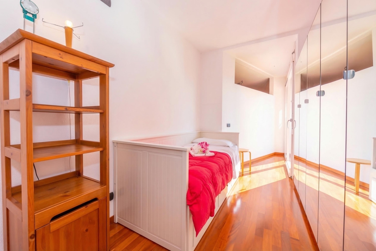 Above the Living space is a mezzanine floor with a Double bed. The apartment benefits from a generous Master Double bedroom with terrace access and a 2nd child-friendly bedroom with terrace access and single bed. Private laundry facilities and 1.5 bathrooms (one full with a bath tub and shower cubicle) complete the internal layout of this large and inviting family retreat.