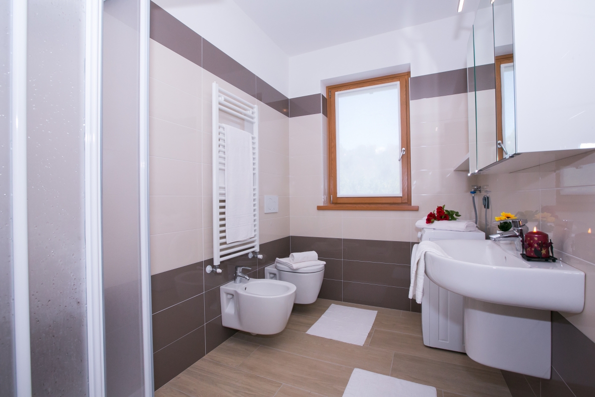 The modern Villetta benefits from 2 bathrooms in all, alongside washing and ironing facilities. The modern family bathroom is fitted with a bathtub, shower tap, wash basin, WC and bidet, whilst the 2nd bathroom offers a contemporary shower cubicle, wash basin, WC and bidet.