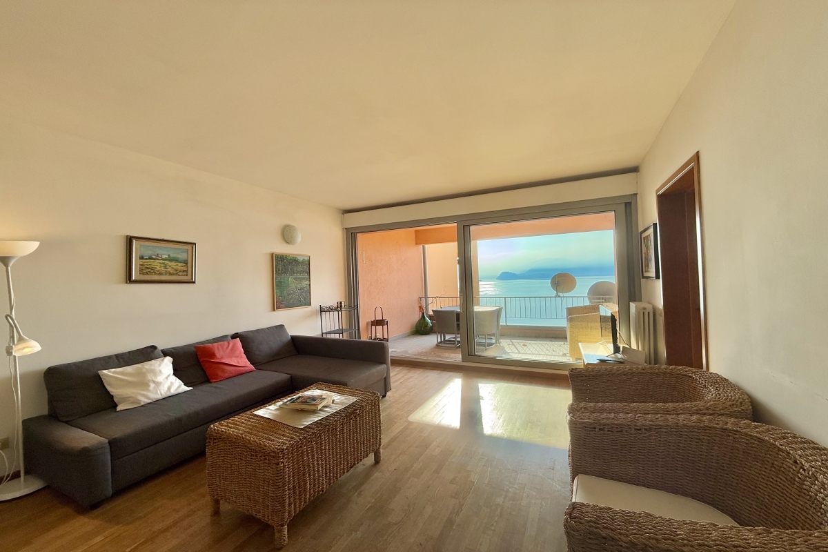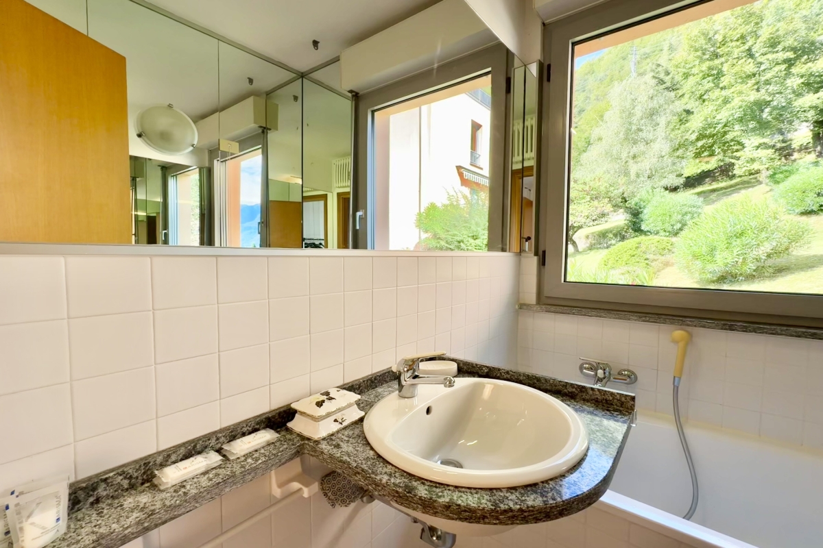 A fabulous view of Bellagio and the famous fork of Lake Como can be enjoyed from the sliding glass doors, which open and lead out onto a private covered terrace balcony.