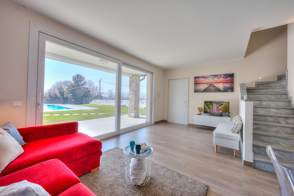 From its scenic hillside setting, the exclusive detached villa is just a short walk away from a selection of Italian restaurants, bars, a grocery shop, bank, post office and other useful amenities found in Besozzo.