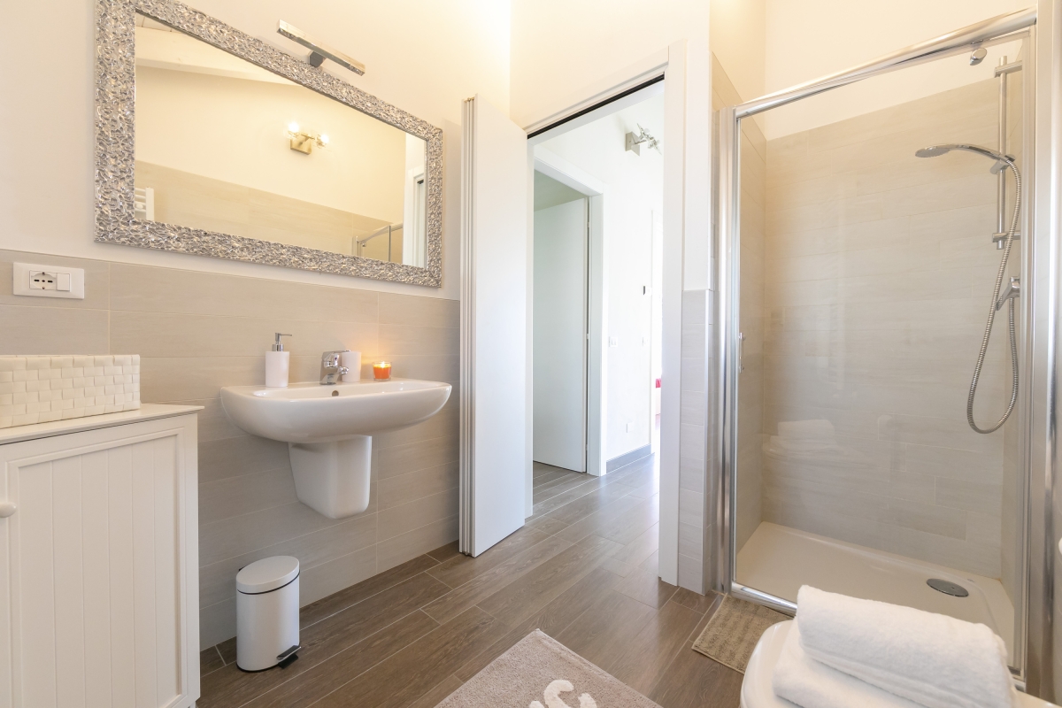 Stone stairs lead upstairs to the generously-proportioned sleeping accommodation. In total, groups of 6 can comfortably be accommodated here. The Master bedroom offers lake views and features a Double bed with sunny balcony. The 2nd bedroom also benefits from lake views and balcony access, and is furnished with a flexible single bed with pull out option. The 3rd child-friendly bedroom is equally versatile, and is furnished with a single bed with pull-out option. Two beautiful fitted shower rooms complete the inviting interior.