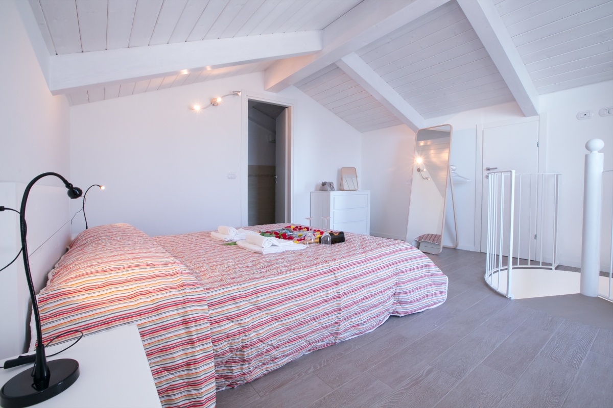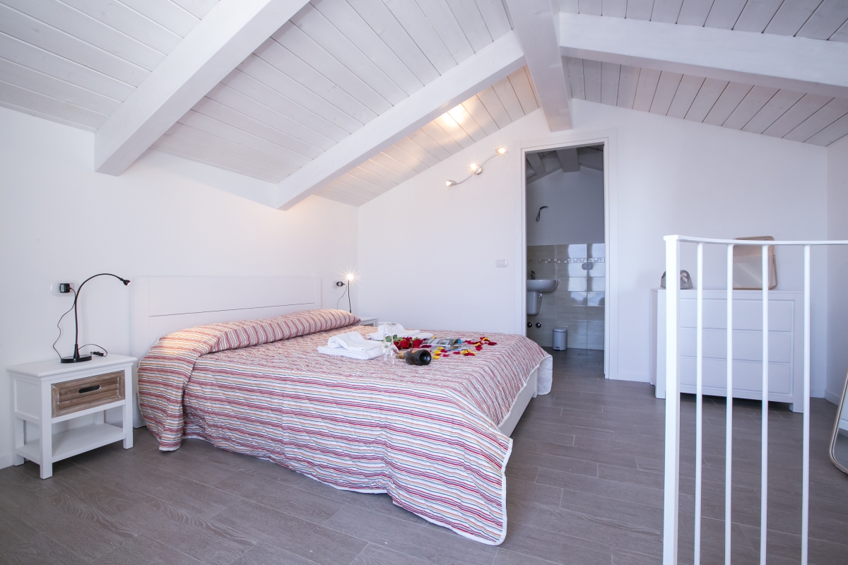Leading off from the stylish main living space, a generous double bedroom and contemporary bathroom with large walk-in shower features. A quirky spiral staircase leads up to the gorgeous loft-style master suite above. The master double bedroom boasts a luxury En-suite bathroom with bathtub and offers access to a terrace with sun loungers and the sunny poolside beyond.