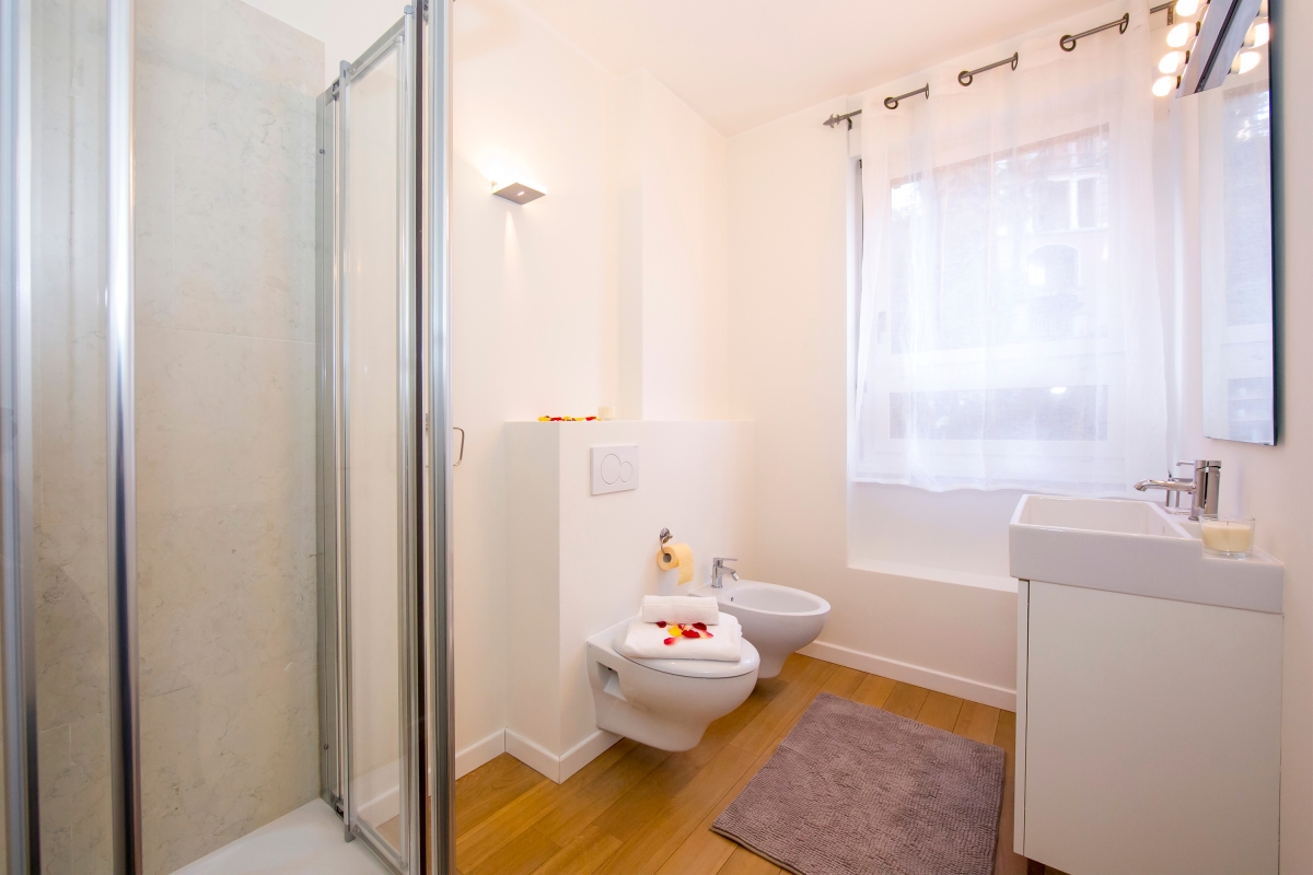 The spacious apartment also benefits from a contemporary fitted family shower room, a hairdryer, central heating, wooden flooring and private laundry and ironing facilities.