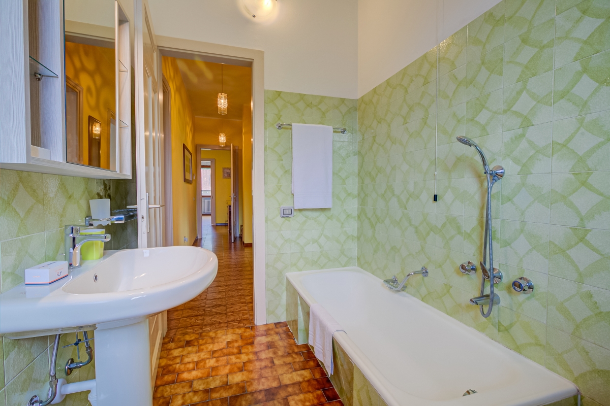 Bathroom 1: A spacious retro-style suite with a bathtub, wash basin, WC, and bidet