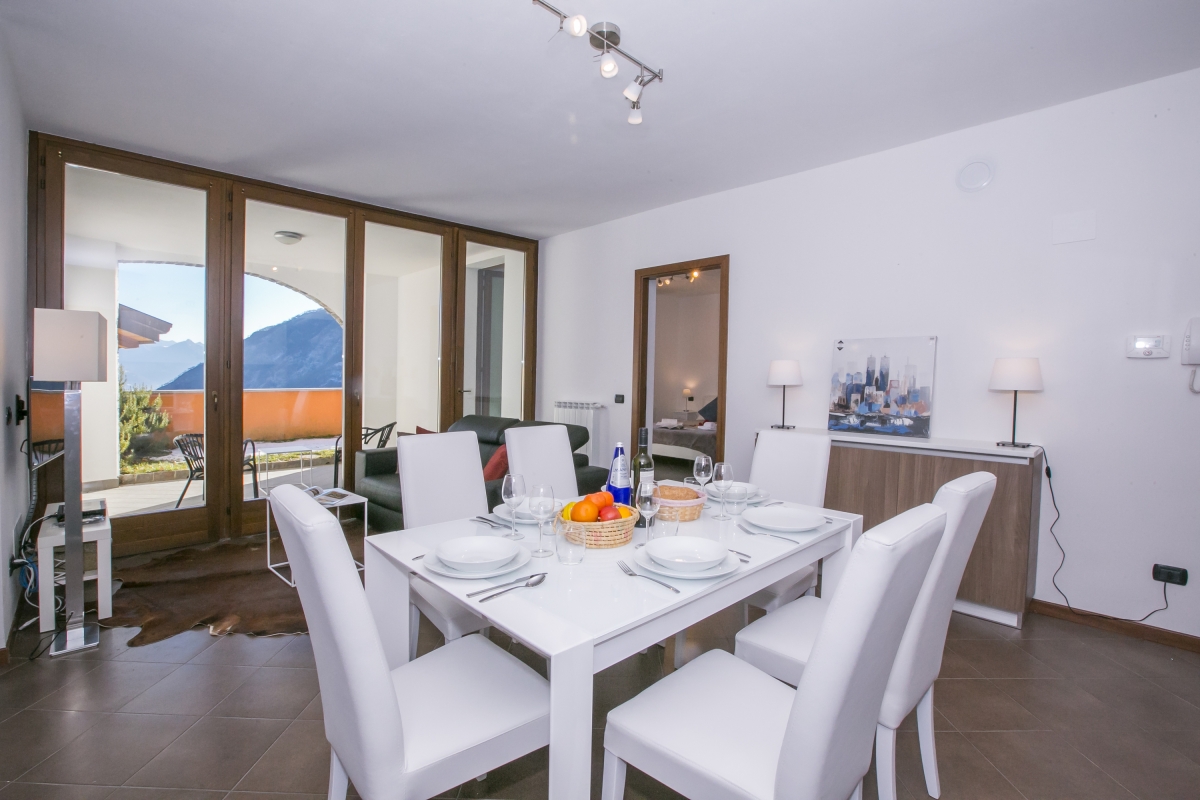 Inside, the WIFI-enabled 1st floor apartment oozes an inviting contemporary ambience. Effortlessly blending with timeless lake-mountain view scenery, the open plan Living space sets the scene for memorable entertaining! The chic sitting area is accompanied by a modern Kitchen Diner and flat screen TV, whilst an adjoining alfresco dining terrace invites guests to soak up the breath-taking views.