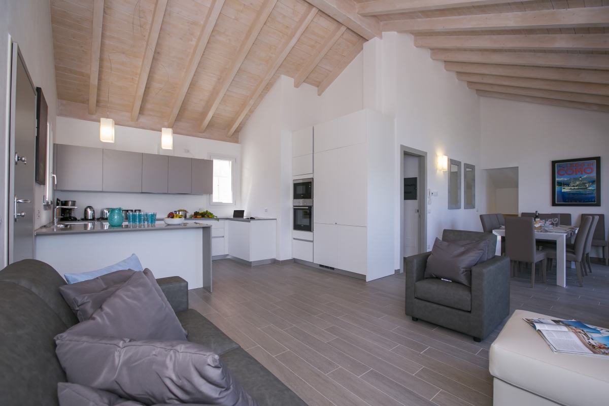 Situated on a very quiet road on the hillside, yet only a short walk down to the edge of Lake Como and Menaggio’s vibrant town centre, this serene and sophisticated penthouse is set over two levels, separated by a small internal staircase. The property benefits from double height ceilings throughout, giving a wonderful sense of space.