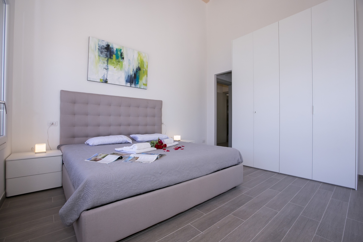 Upon entering the luxury penthouse, the open plan Living and Kitchen area sets the scene for year-round relaxation and entertaining. A whitewashed beamed ceiling and serene interior palette of cream and warm muted greys offer a contemporary, tranquil ambience in which to unwind on the comfortable sofa and armchairs. Free WiFi and a wall-mounted flat screen SAT TV provide added home-from-home comfort. Leading directly outside, the open plan reception provides a carefree summertime flow for easy-going alfresco barbeques, as well as laid-back moments spent sunbathing with an ice-cold drink and a good holiday novel.