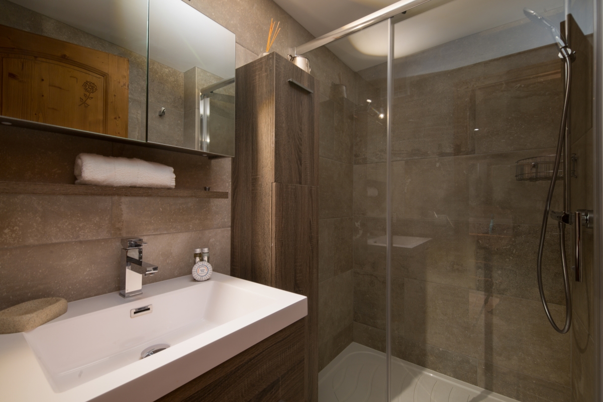 The 4-storey Savoyard-style chalet residence benefits from a cosy ground floor salon with pool table and a covered underground parking area, for residents’ use.