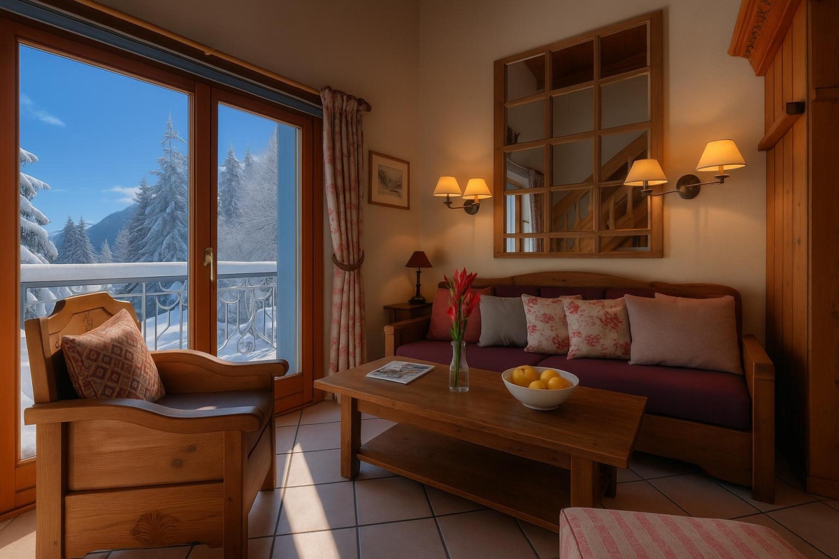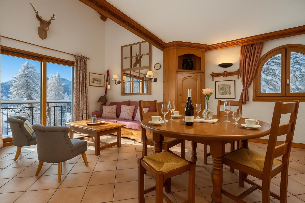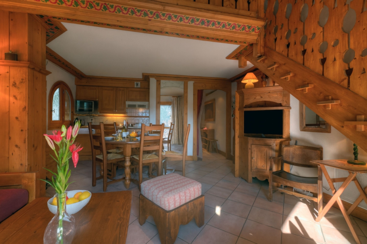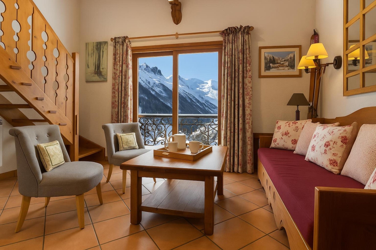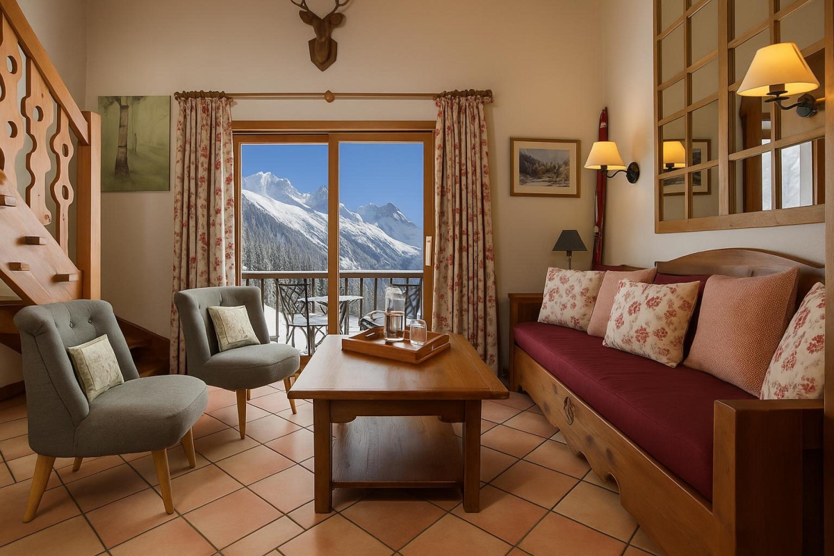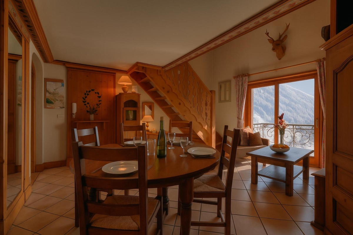 A magic Savoyard-style duplex with private Mont Blanc view balcony and carefree proximity to the ski lifts!