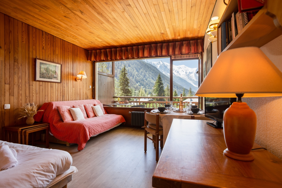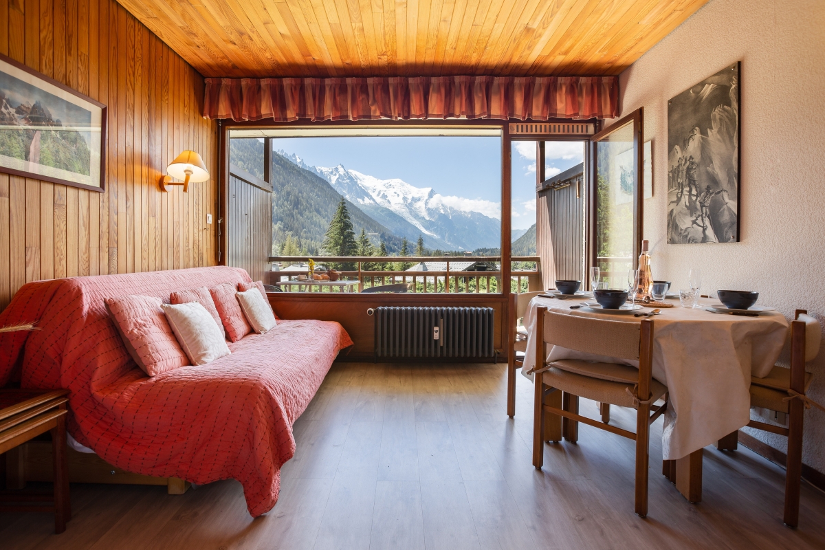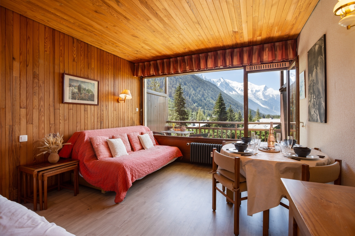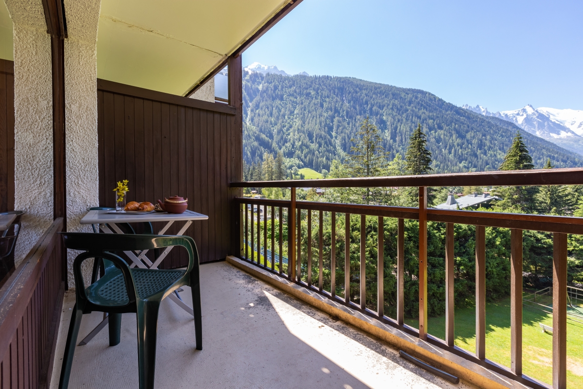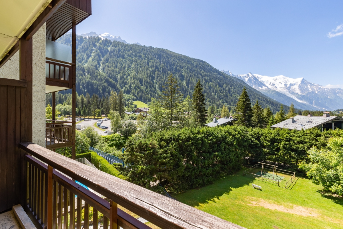 The 4-storey Résidence of Grand Montets also benefits from a beautiful shared garden with heated outdoor pool and a resident parking area.