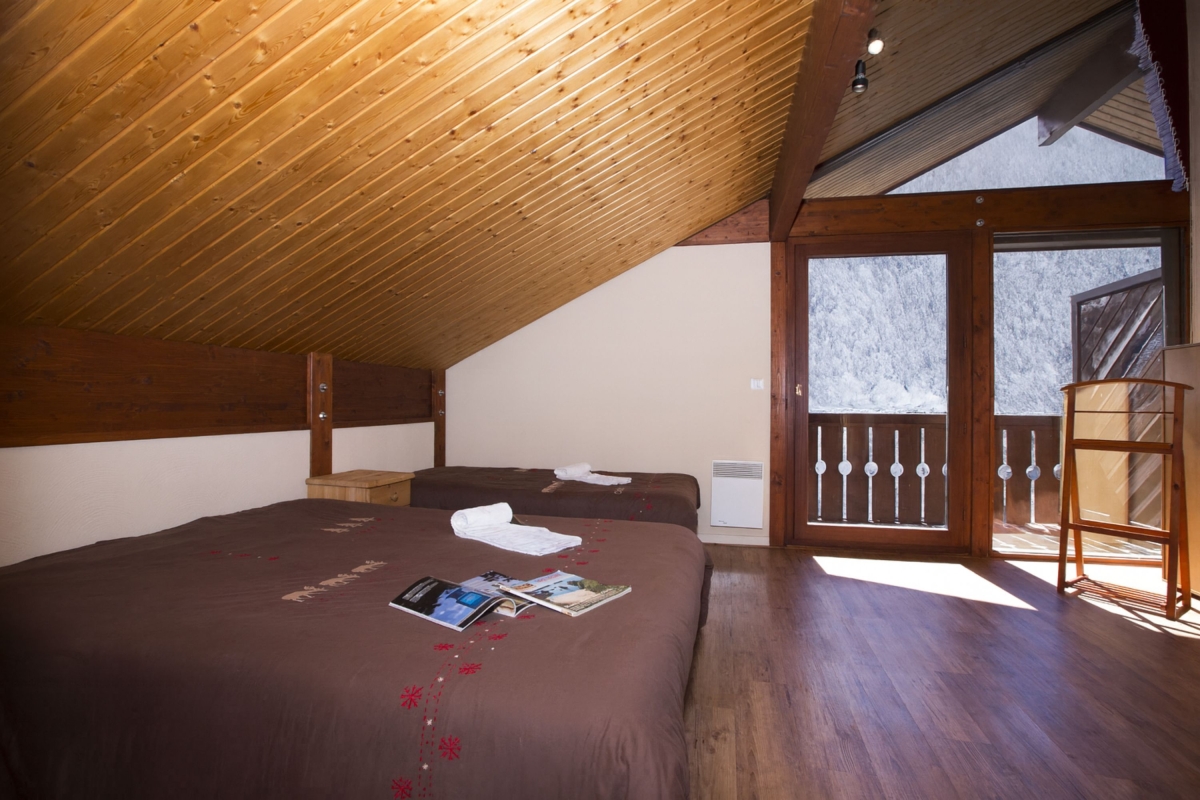 The chalet boasts a wealth of flexibility for couples or growing family groups. A spacious Double bedroom promises a restful haven for 1 couple, whilst a 2nd mountain-view mezzanine bedroom with Double bed and 2 single beds offers added versatility for family and friends. The 3rd bedroom with balcony perfectly suits either a couple or a young family; with a Double bed and Single bed featuring alongside a full En-suite.