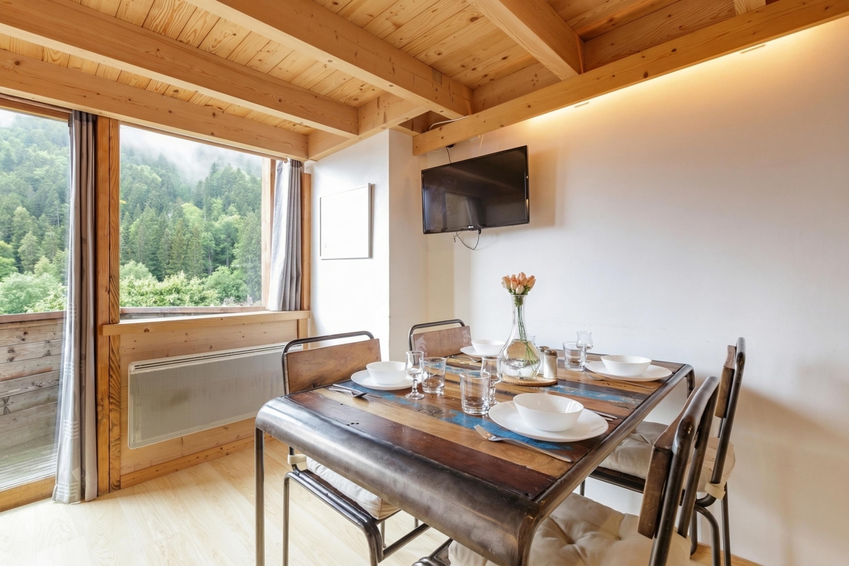 Situated in a natural riverside setting along ‘Chemin sous la Grand’ at the entrance of the village, guests are conveniently placed for reaching a local Pizza restaurant (1-minute walk), Les Grands Montets ski lift (2-minute walk away) and the nearby train station.