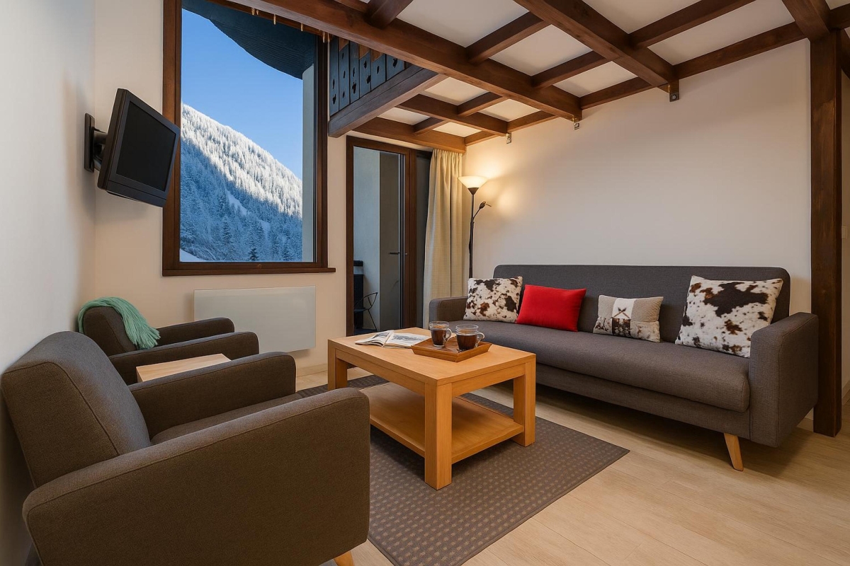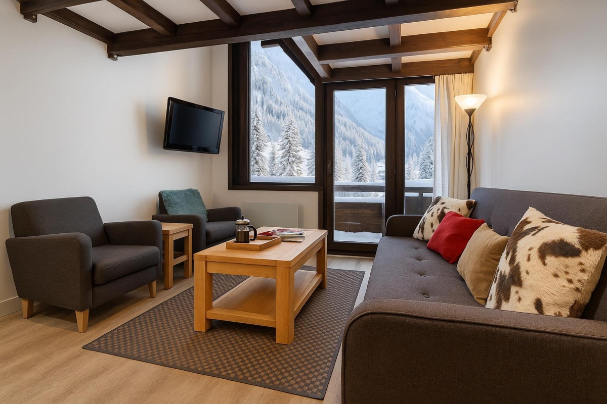 Situated in a natural riverside setting along ‘Chemin sous la Grand’ at the entrance of the village, guests are conveniently placed for reaching a local Pizza restaurant (1-minute walk), the Les Grands Montets ski lift (230 mt walk away) and the nearby train station.