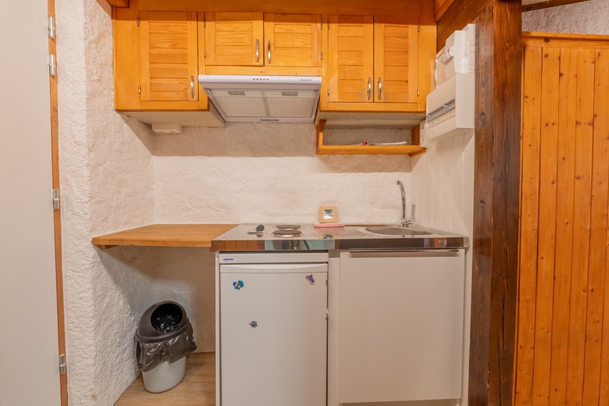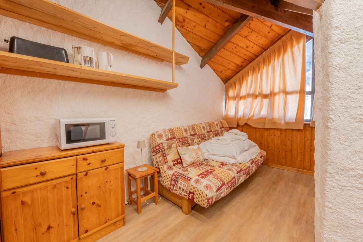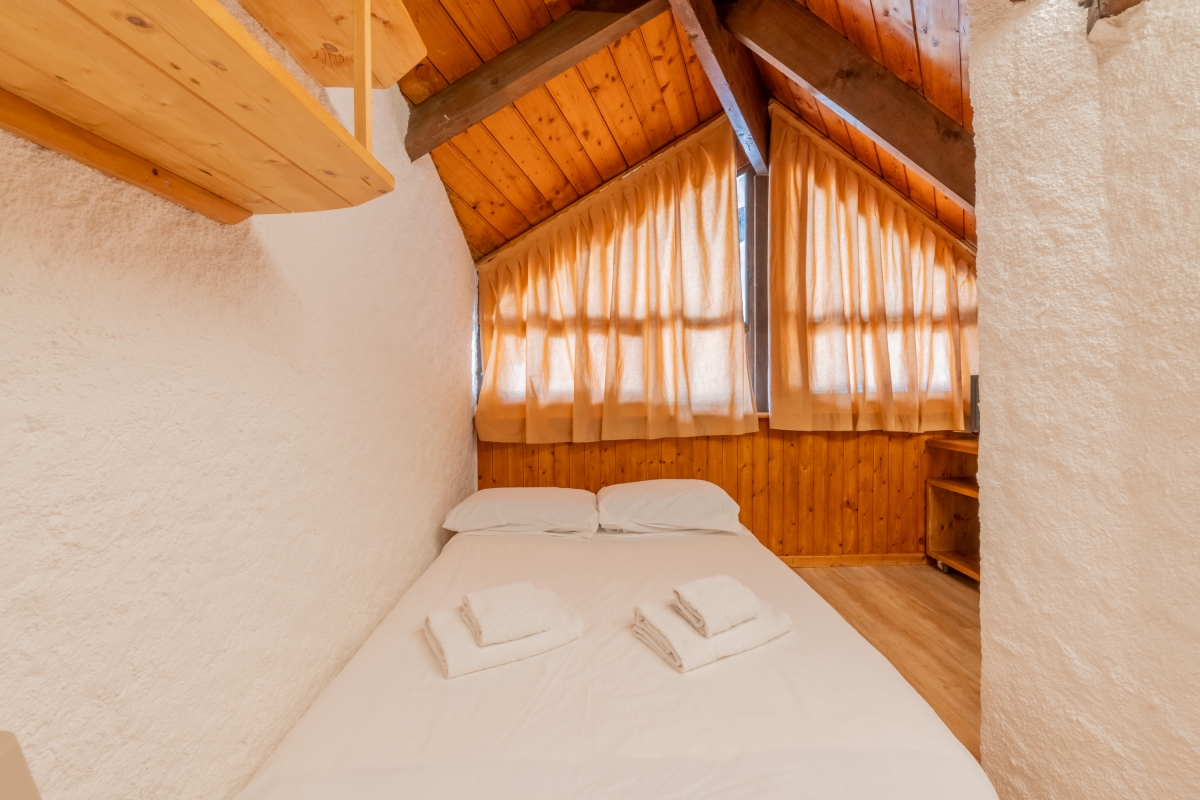 The 5th floor apartment features in an authentic 5-storey chalet building, with lift access to the 4th floor. There are 16 external steps. Outside, the budget holiday retreat benefits from shared access to a sunny garden and a resident parking area.
