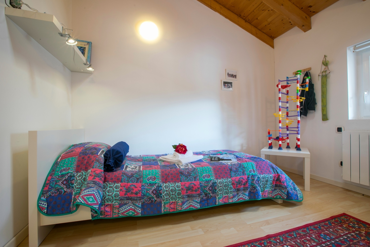 Bedroom 1: A flexible loft-style room with beamed ceiling, Double bed