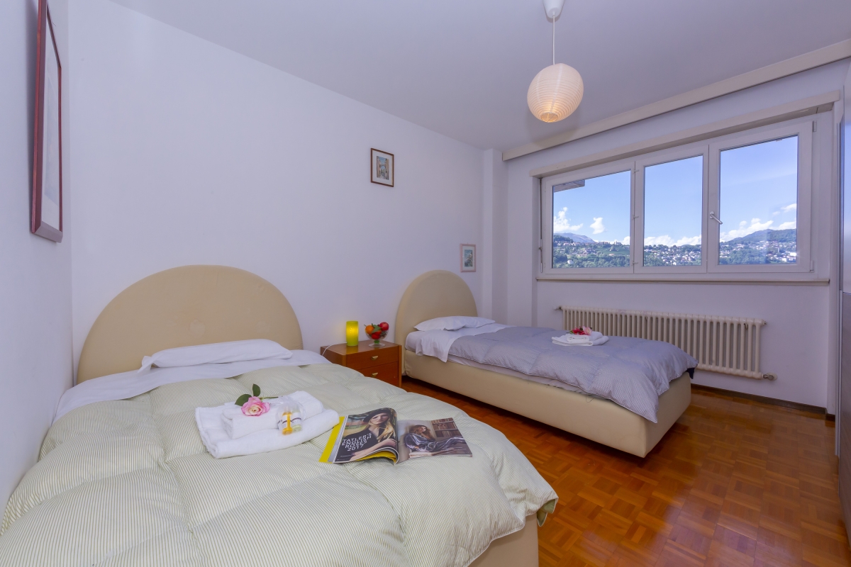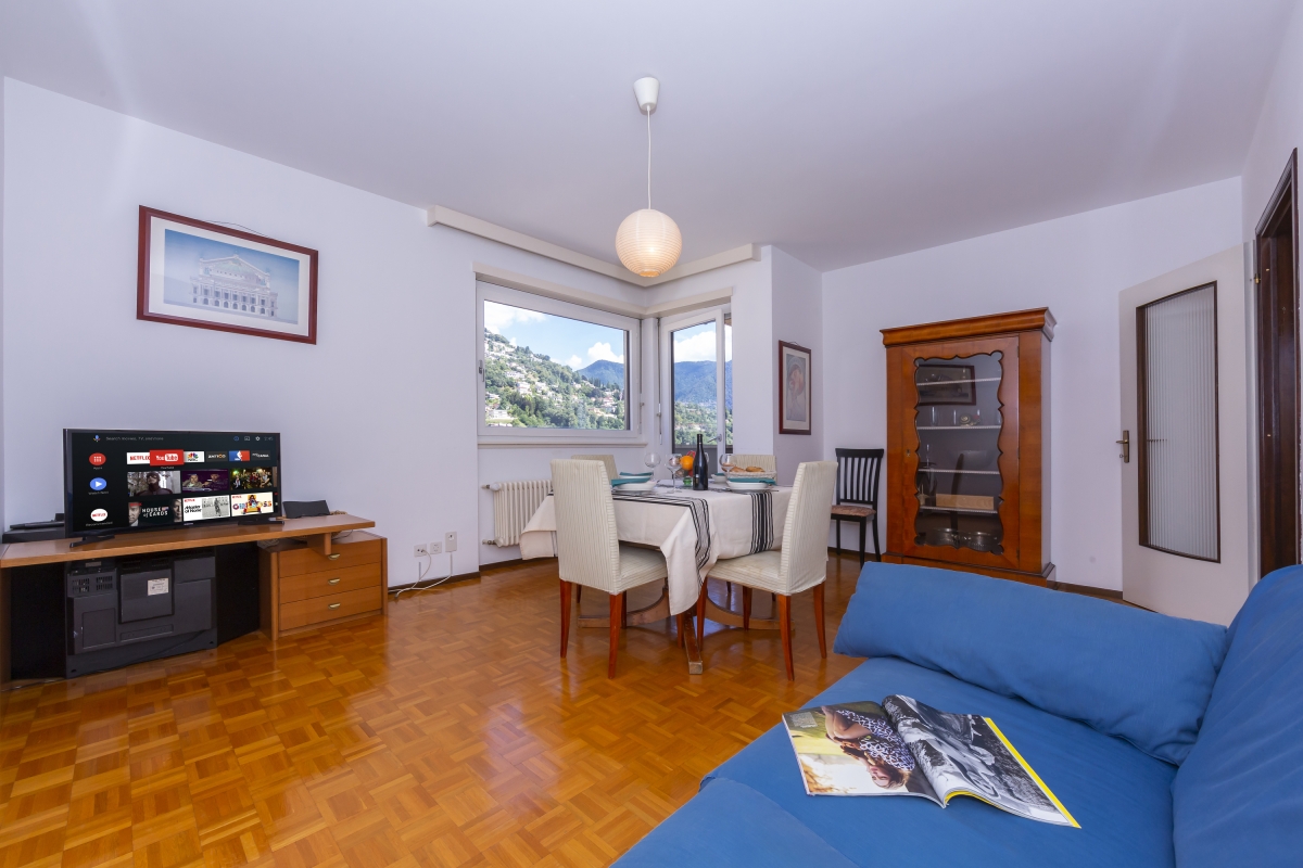 Conveniently placed for relaxed Lugano city breaks, this timeless, generous-size apartment enjoys far-reaching views which include the surrounding city scape, the beautiful mountainside and the tranquil lake.