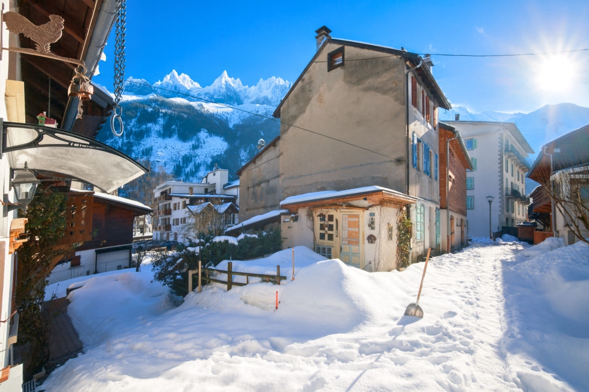 Outside the traditional Savoyard charm of the house blends in along the terraced street which offers an extraordinary view of the mountain tops and leads in 2 minutes to a selection of local eateries and central Chamonix.