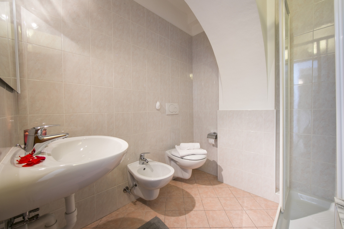 Bathroom 2: A full family suite with bath tub, shower tap, shower cubicle, a wash basin, WC & bidet