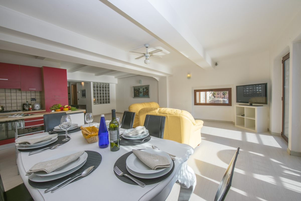 The 1st floor apartment is situated in a 4-storey mixed-purpose residence, which is located along the main lakeside road into town. From the convenient communal street entrance, the road leads in no time to the quaint harbour, the café-lined piazzas and shop-lined streets of central Menaggio, as well as the town’s ferry stop for days out sightseeing (all a 1-minute walk away).
