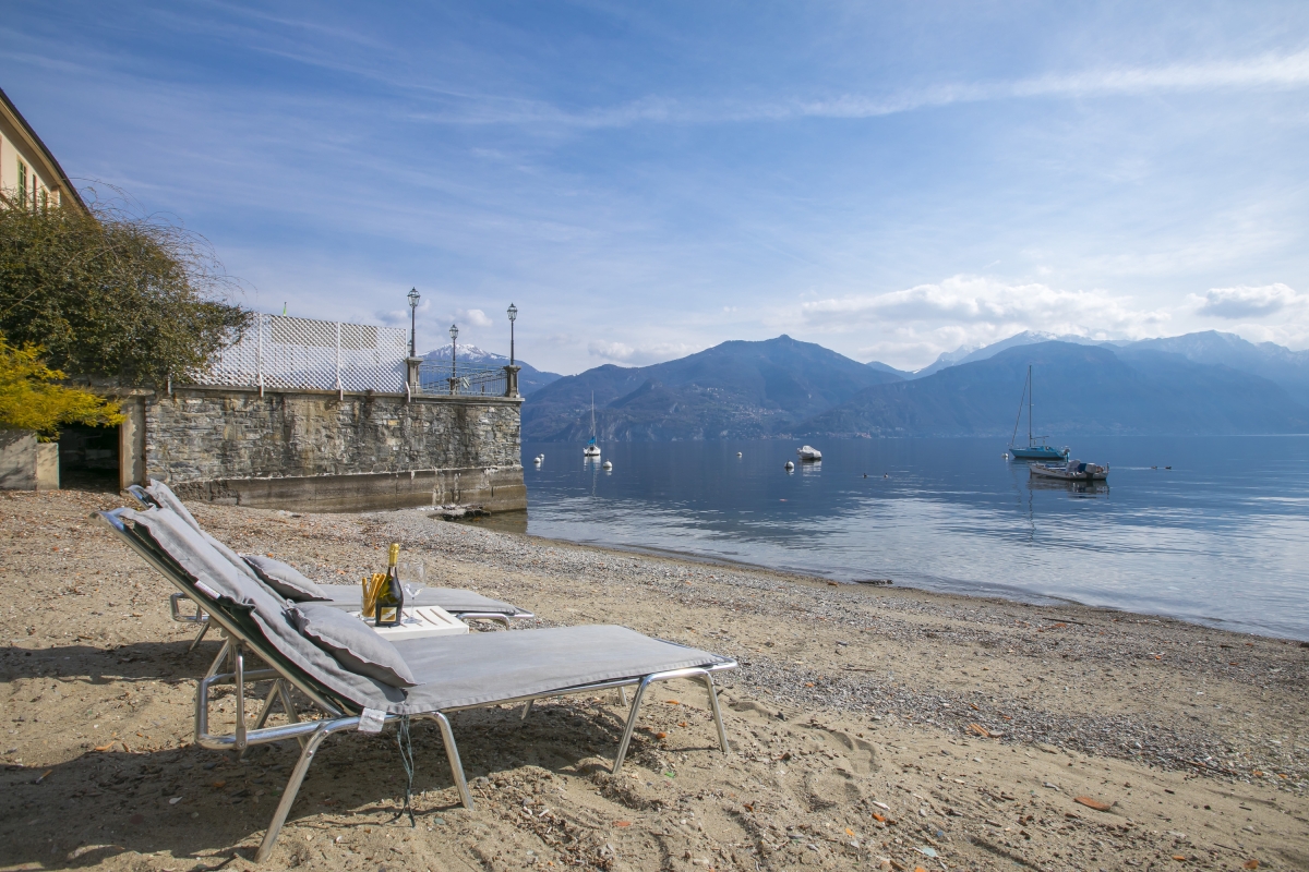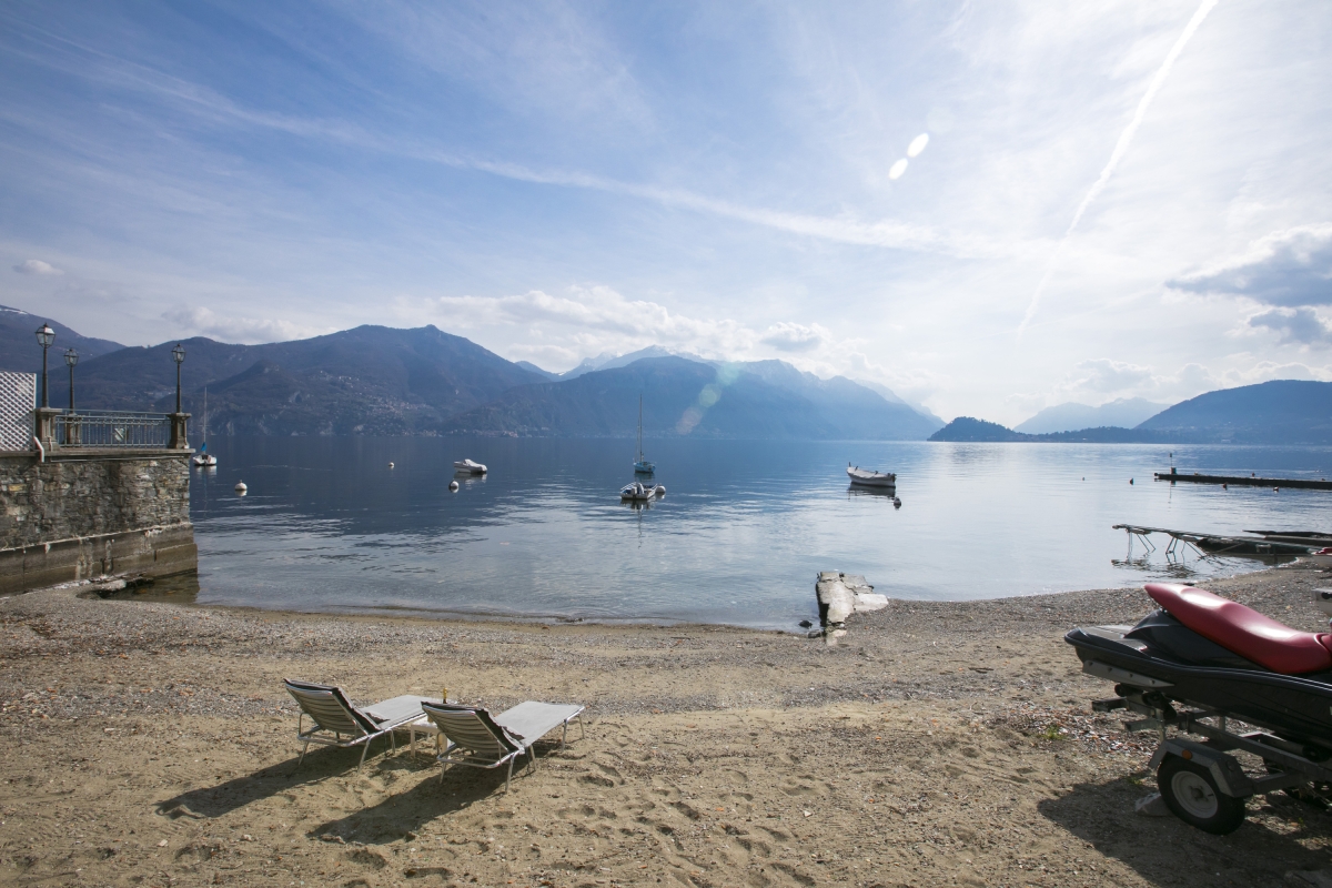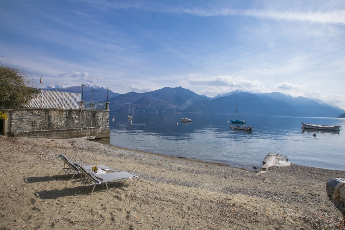 The private sunny lake view balcony is furnished with a café bistro set for 2 and enjoys views of bobbing boats and the famous resort towns of Bellagio and Varenna. The magical setting creates an inspiring back drop for morning coffees, lazy sun bathes and savouring a chilled glass of Prosecco at sunset. The lakeside residence also benefits from its own communal shingle lake beach.