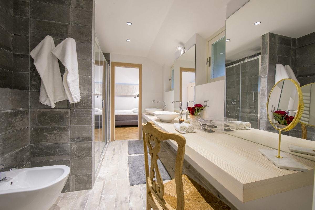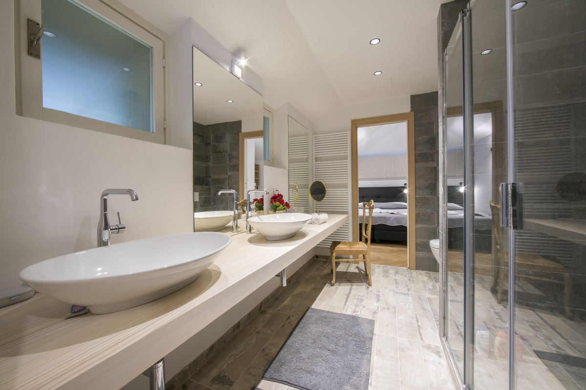 Bathroom 3: A bathroom with twin shower heads, his & hers wash basins, a WC & bidet (shared by Bedroom 4 & 5)