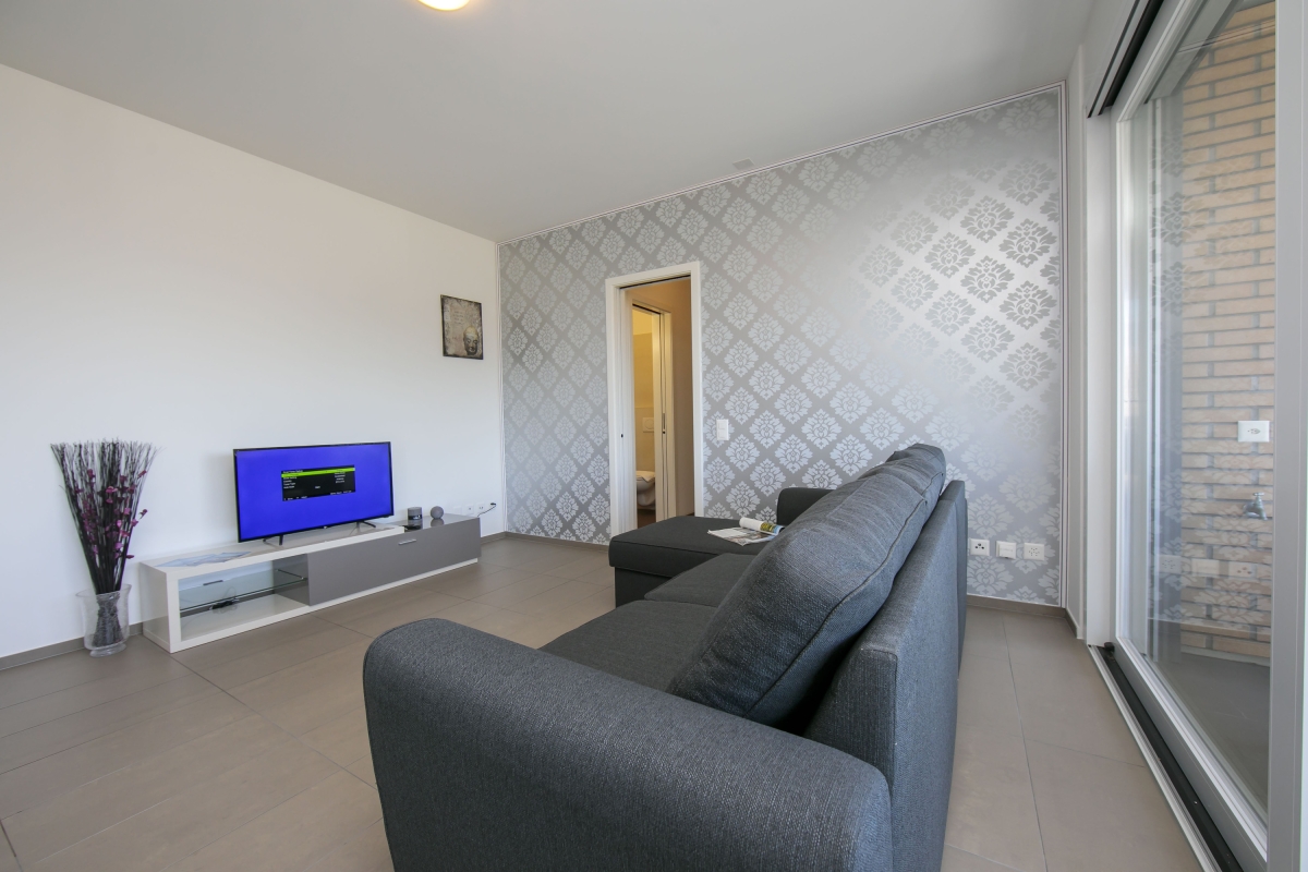 Situated within easy reach of the city centre, this modern 1-bedroom apartment is ideal for those looking to relax and explore. Inside, the balcony apartment is equipped with underfloor heating and a stylish modern furniture. A modern living area with sofa and flat screen TV is accompanied by access to a covered private balcony terrace with alfresco dining set. As well as entertaining outside, the apartment is also equipped with a contemporary kitchen diner for 2. A spacious master double bedroom offers a layout for 1 couple or 2 guests. A contemporary fitted shower room and WC complete the layout of this well-presented retreat. A private parking space can be found on-site and the 4th floor apartment is easily reachable by lift.