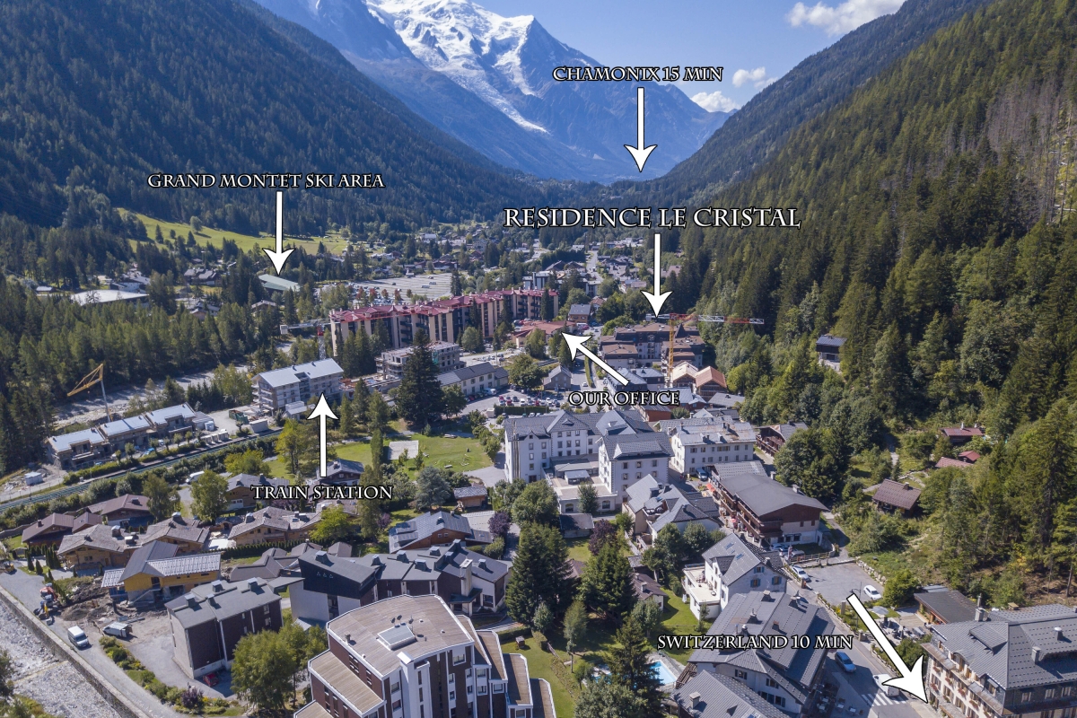 The modern new-build residence features along the main road of ‘Rue Charlet Straton’; a short, flat walk away from the centre of Argentière. The train station and bus stop are just opposite the residence, whilst central Argentière offers a lovely range of French-style eateries, affordable cafes, grocery shops and amenities. The Les Grands Montets ski lift is only an 8 minutes’ walk away. The buzzing centre of Chamonix is only 15 minutes’ drive away.