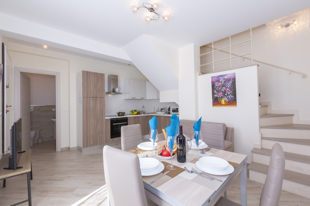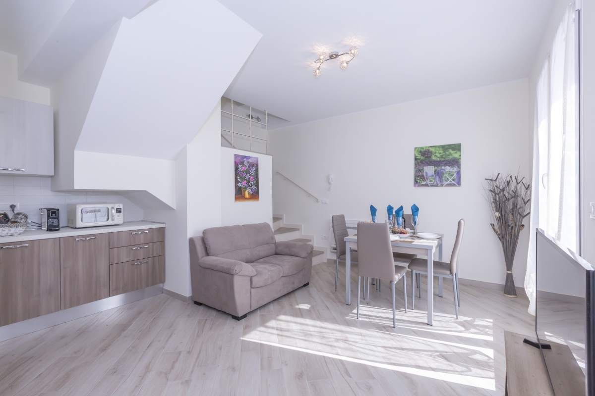 The modern 2-storey residence is situated on a quiet road, Via Ollandini’, 8 minutes’ drive from a selection of authentic eateries, a seafood restaurant, the famous gardens of Villa della Pergola, the Torre Saracen ruins and the beautiful lake lido beaches.