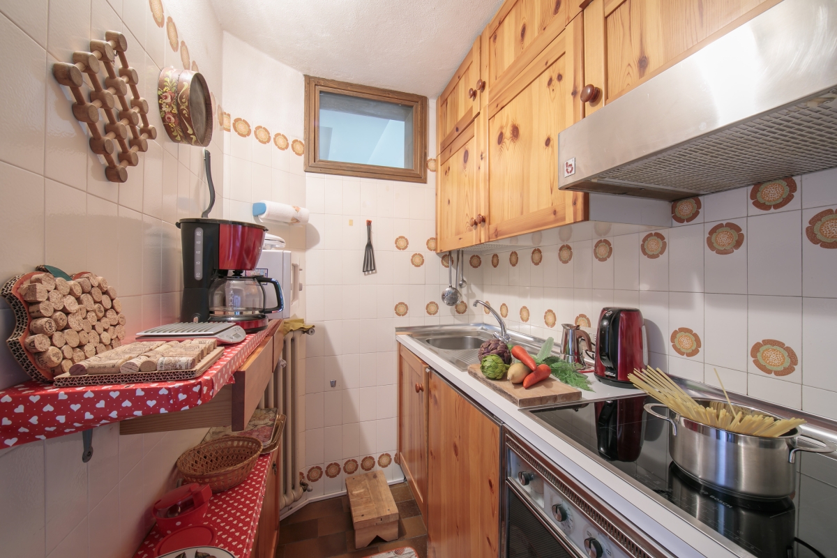 A traditional family bathroom suite is accompanied by a ski storage area and a private garage. The apartment is reached by 50 steps. Outside, the residence benefits from an authentic setting which places guests 2km away from the centre of Livigno and 500 metres from the ski shuttle bus.