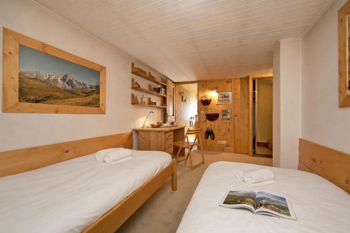 Inside, a cosy and inviting ambience awaits. The split-level balcony apartment offers breath taking Mont Blanc views and is fully-equipped with all the must have mod cons a flat screen TV with DVD player and a washer dryer. The charming open plan living area features a comfy single sofa bed, a pair of teak lounge chairs and a well-equipped kitchen diner with oven, induction hob, microwave, kettle, toaster, american style coffee maker, fridge and dishwasher.