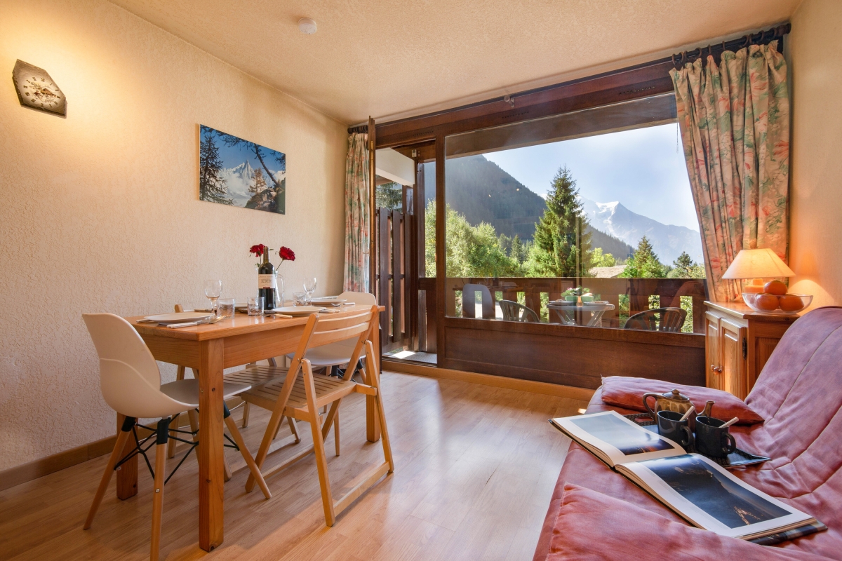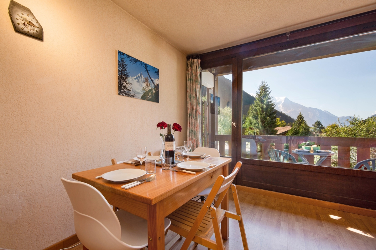 Situated a stone’s throw away from the slopes and ski school, this functional balcony retreat sets the scene for enjoyable family breaks. Inside, the 1st floor apartment comprises of a spacious entrance hallway with set of bunk beds and a spacious, scenic open plan living room beyond. A sofa bed for 1 person is accompanied by a flat screen TV, a kitchenette and dining table for 3. An adjoining private, south-facing balcony with bistro dining set offers breath-taking views of Mont Blanc. A retro-fitted bathroom with bath tub and over head shower completes the layout of this bright and cheerful budget-friendly retreat.