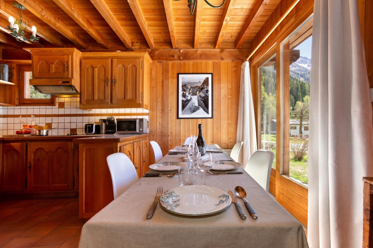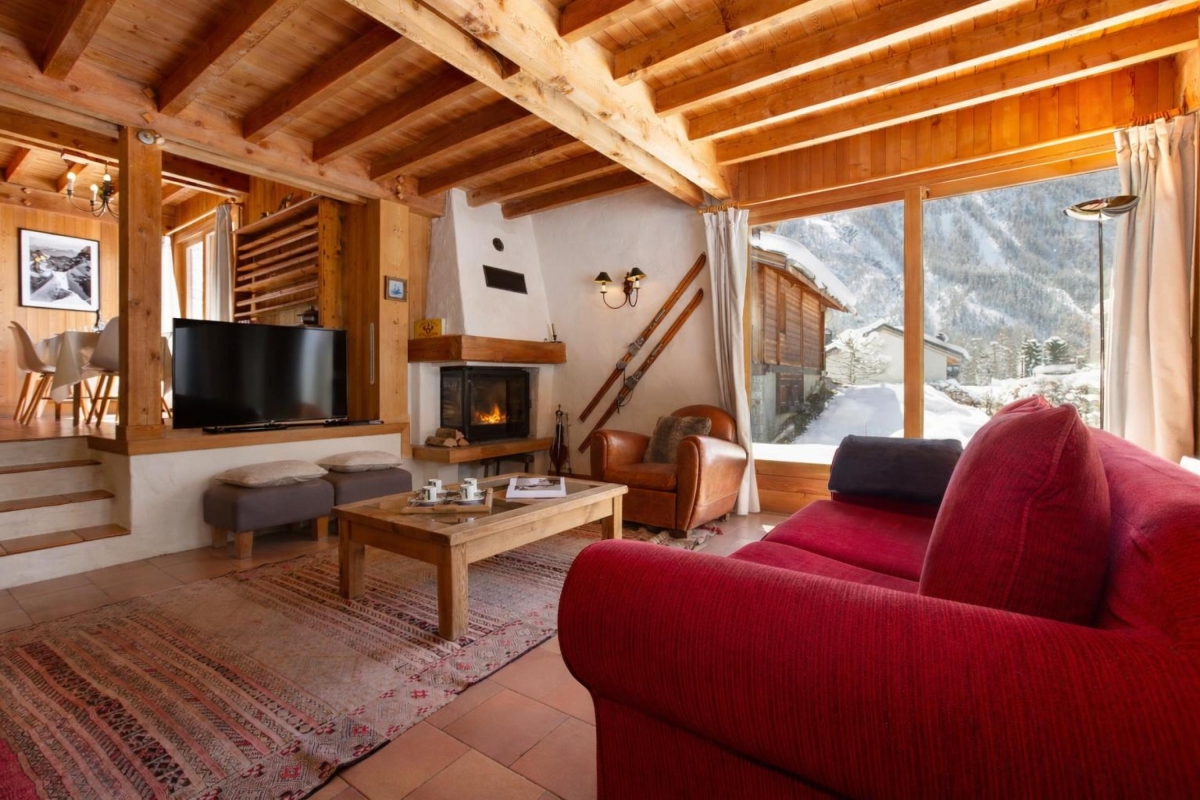 The 2-storey chalet is situated along ‘Chemin du Beugeant’, 100 metres away from an uncovered public car park and 450 metres away from a bus stop. The well-serviced centre of Argentière is easily reachable on foot or by car (15 minutes’ walk/ 3 minutes’ drive). There, a lovely range of French-style eateries, affordable cafes, grocery shops and resort amenities are on hand to perfectly complement a self-catering stay. The Les Grands Montets ski lift is only 7 minutes’ drive away.