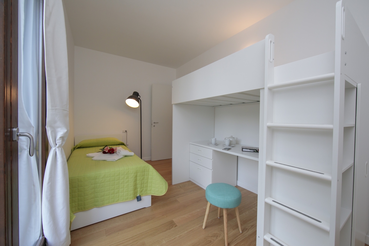 Bedroom 2: A welcoming child-friendly room with a bunk bed, wardrobe & balcony