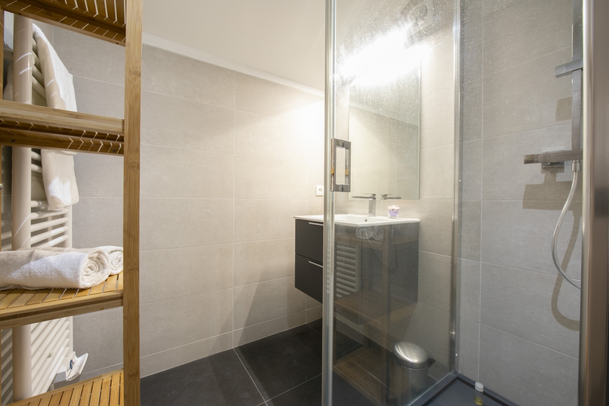 Bathroom 1: A modern fitted suite with shower cubicle and wash basin