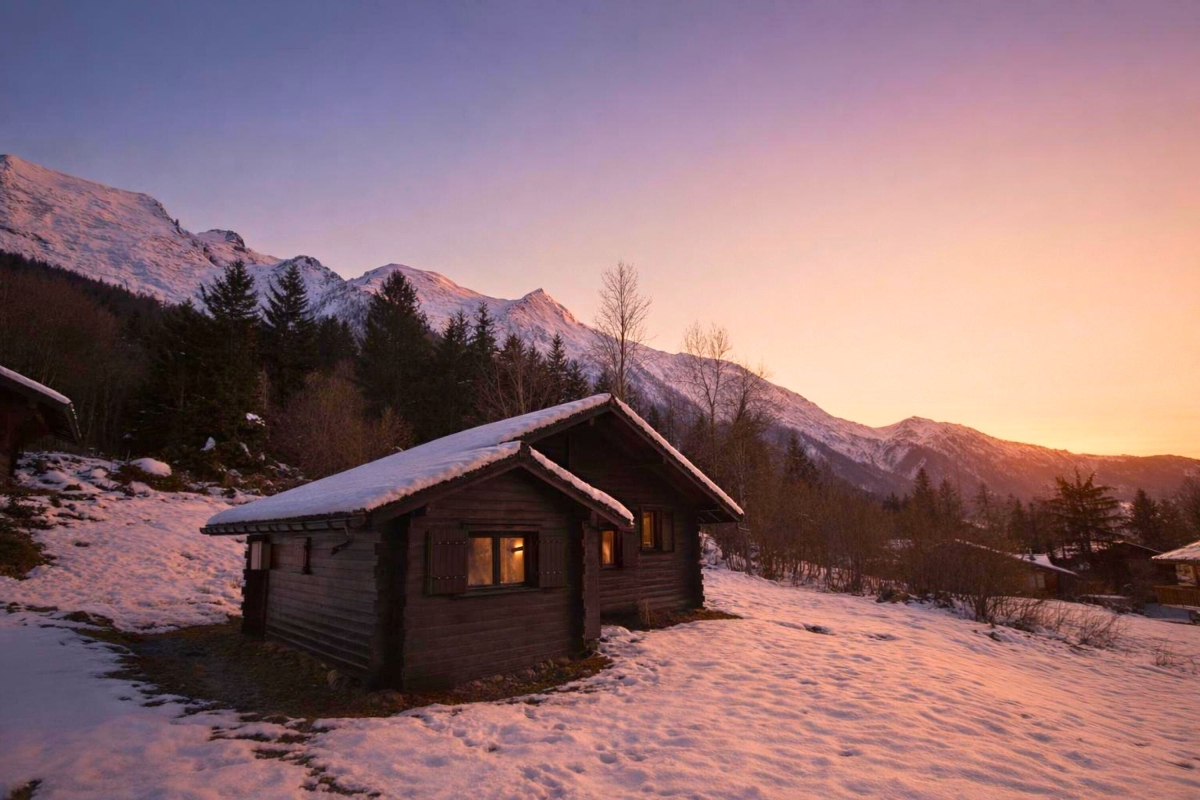 The chalet enjoys a serene natural location along ‘Clos des Aubépines’, just 10 minutes’ drive from Chamonix.
