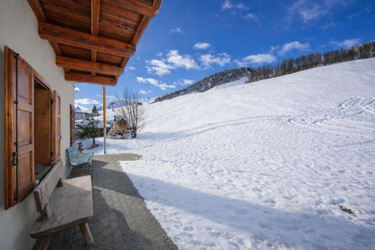 The chalet residence is situated along ‘Via Domenion’ in Livigno; placing guests within convenient reach of the slopes just opposite. In fact, after a day on the slopes, it is also possible to arrive on skis directly at the front of the residence! The ski school with mini lift and small nearby supermarket are both within 5 minutes’ drive away.