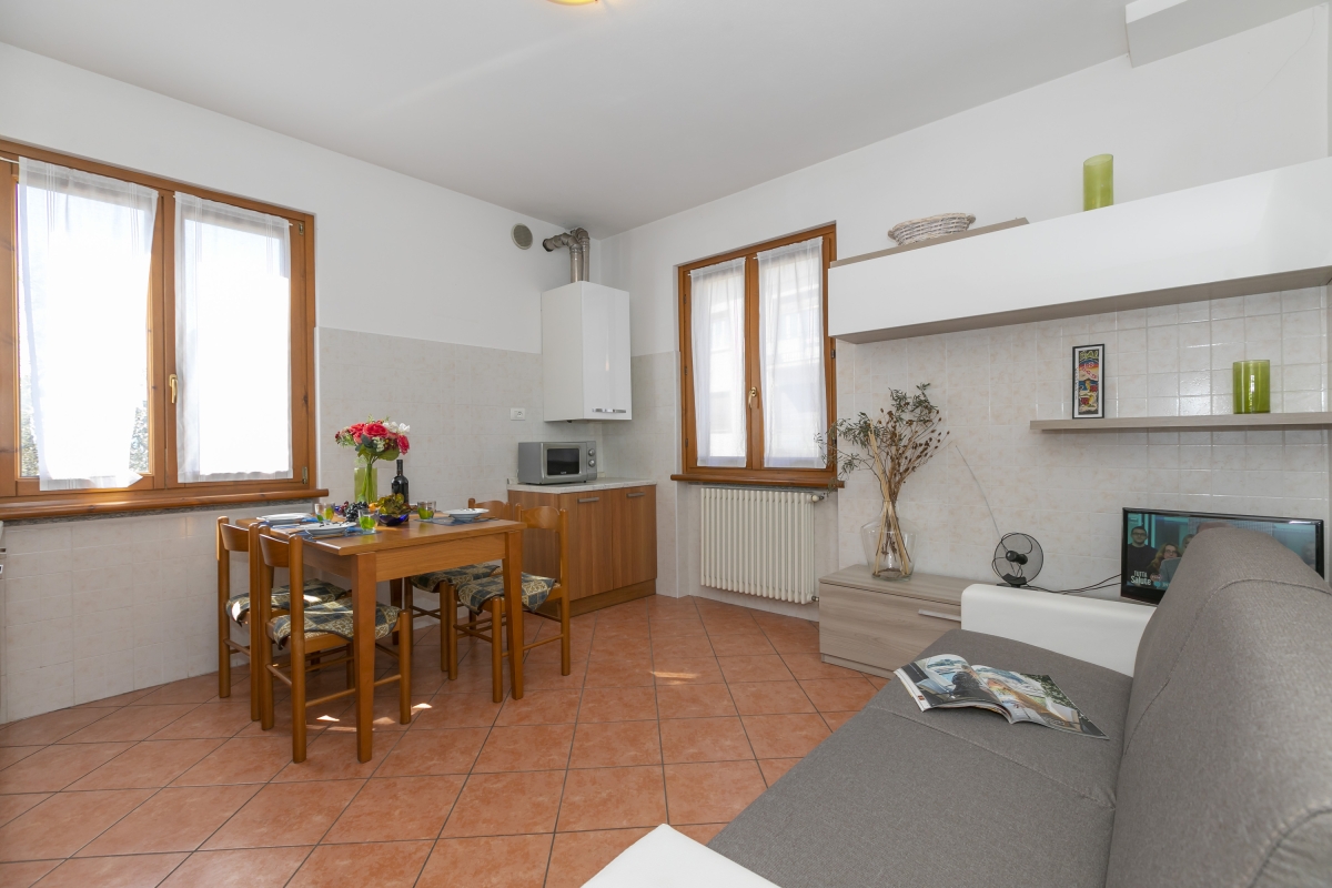 Inside, this 1st floor apartment offers a scenic and functional holiday base for groups of 4. The light and airy open plan living room offers a double sofa bed, a flat screen TV and a modern fitted kitchen diner for 4, with scenic lake views. A spacious master bedroom with twin joinable beds provides added flexibility, whilst a fully fitted shower room and private laundry facilities promise added convenience whilst away. One of the apartment’s best features is its’ lakeside setting and private corner balcony terrace, which enjoys beautiful views and is furnished with an alfresco sitting and dining area, perfect for summertime entertaining. A pair of sun loungers provide carefree moments overlooking the lake. Subject to availability, the 1-bedroom apartment can also be rented alongside another in the same residence (ID 3643).