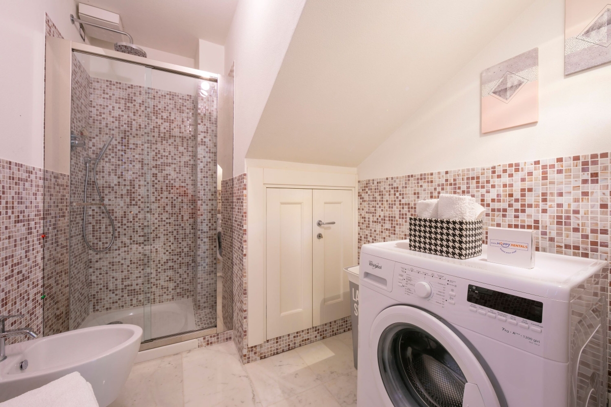 Bathroom 4: Modern fitted suite with a shower cubicle, wash basin, WC, bidet & washing machine