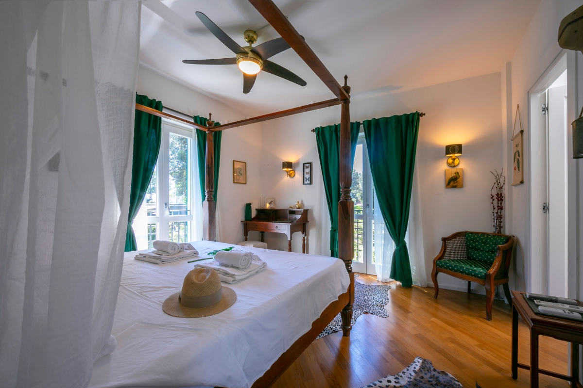 Master bedroom: Tranquil room with a four-poster double bed, walk-in wardrobe & en-suite shower room