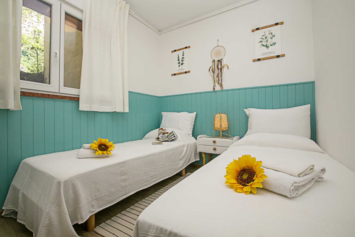 Bedroom 2: A flexible guest room with 2 single beds & wardrobe