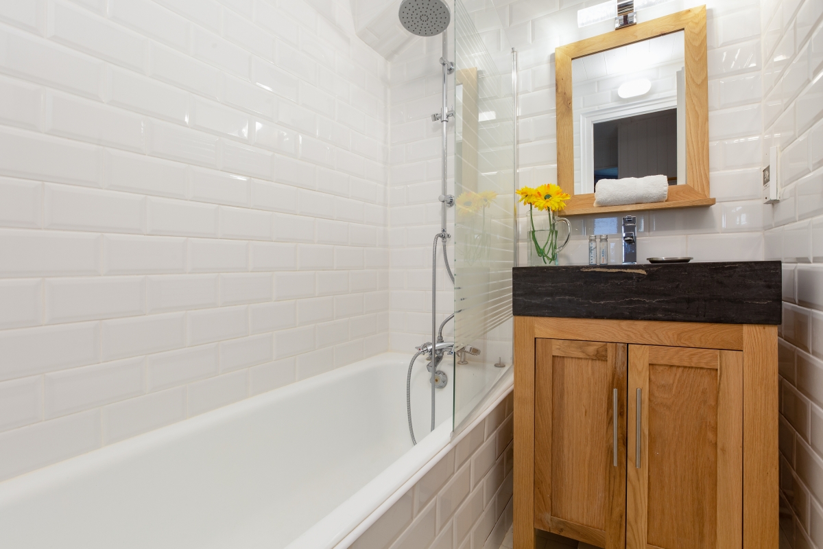 La salle de bain est petite. Il manque un aménagement pour poser trousse de toilette etc....Response: